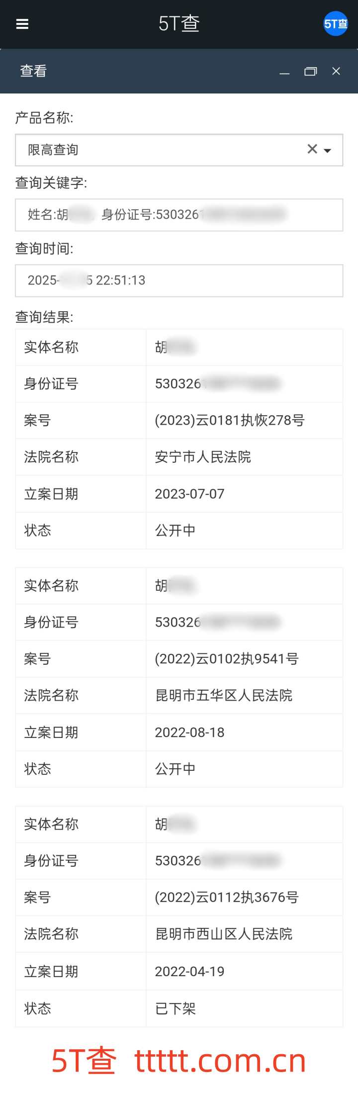 限高人员查询工具,可通过输入企业名称(查企业)或姓名+身份证号(查个人),直连权威数据源,核实目标主体是否被法院列为限制高消费人员(俗称“限高”)。