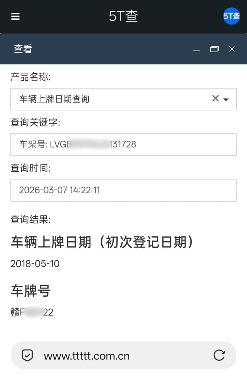 车辆上牌日期查询,通过输入车辆17位车架号(VIN码),查询车辆在车管所登记上牌的日期(即初次登记日期)。