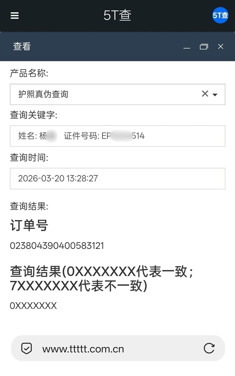 护照真伪查询,输入姓名与护照证件号码,系统直连官方数据进行实时核查,快速查验护照信息是否真实存在,假护照会显示不一致。