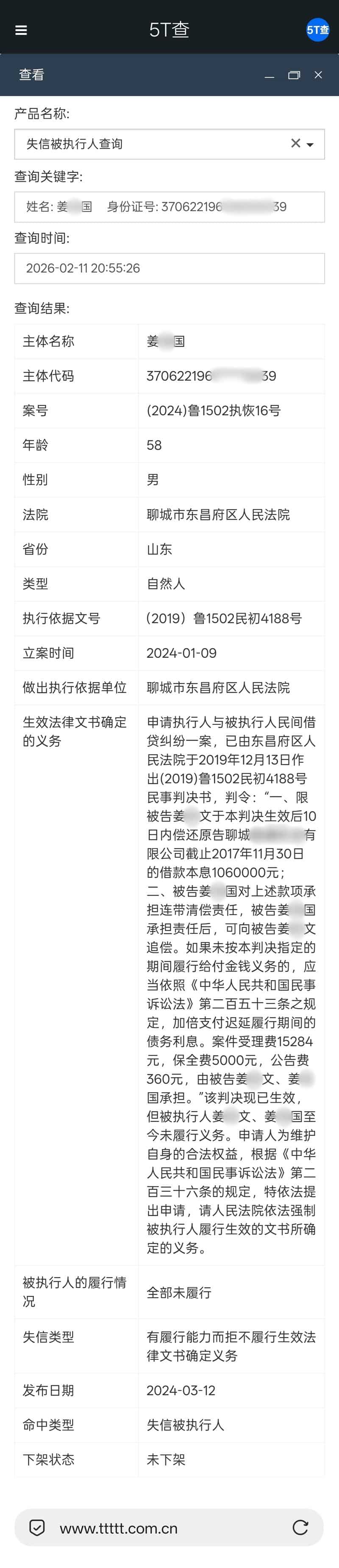 5. 失信记录会根据法院裁定和执行进展动态更新,查询结果仅代表当前时间节点。