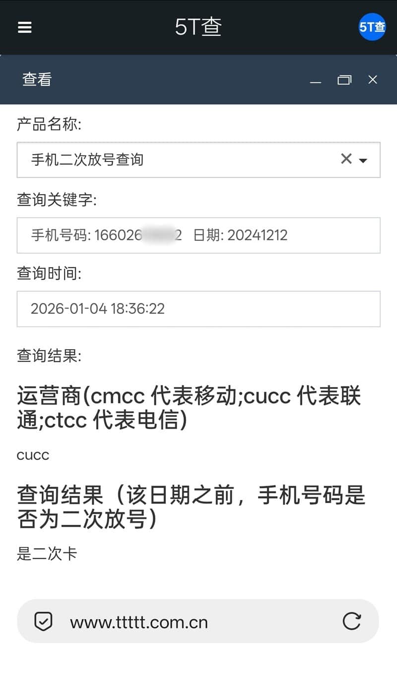 3. 查询结果仅供判断号码在指定日期是否属于二次放号参考,不代表当前使用状态或实名情况,亦不得作为权属凭证。