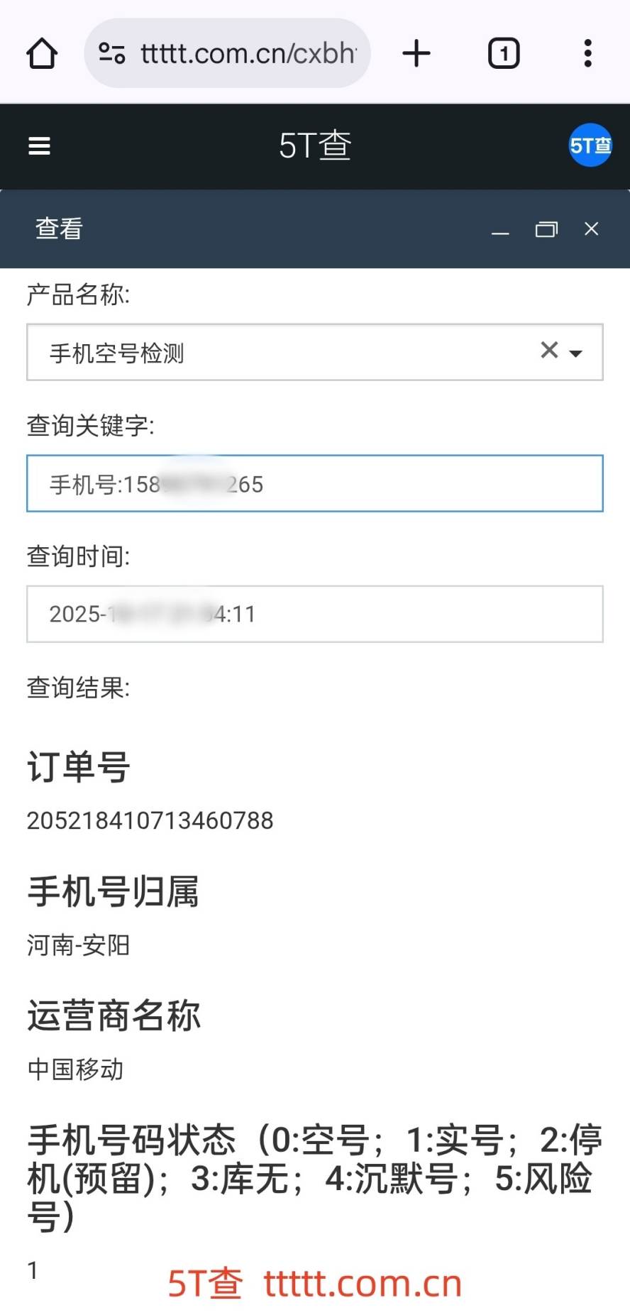 2. 检测结果为当前状态,号码可能随时因停机、过户等原因发生变化;